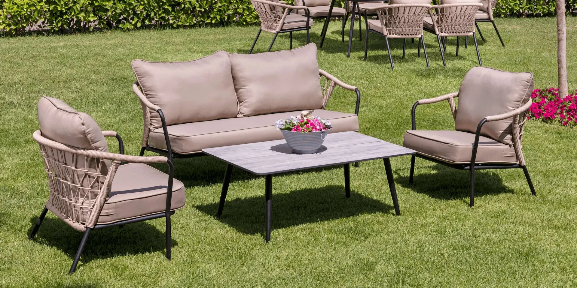 Mess Oturma Grubu, dayanıklı alüminyum iskeleti ve zarif örgü detaylarıyla dış mekanlarınızda modern ve konforlu bir atmosfer oluşturur. Uzun ömürlü ve estetik yapısıyla dikkat çeker.